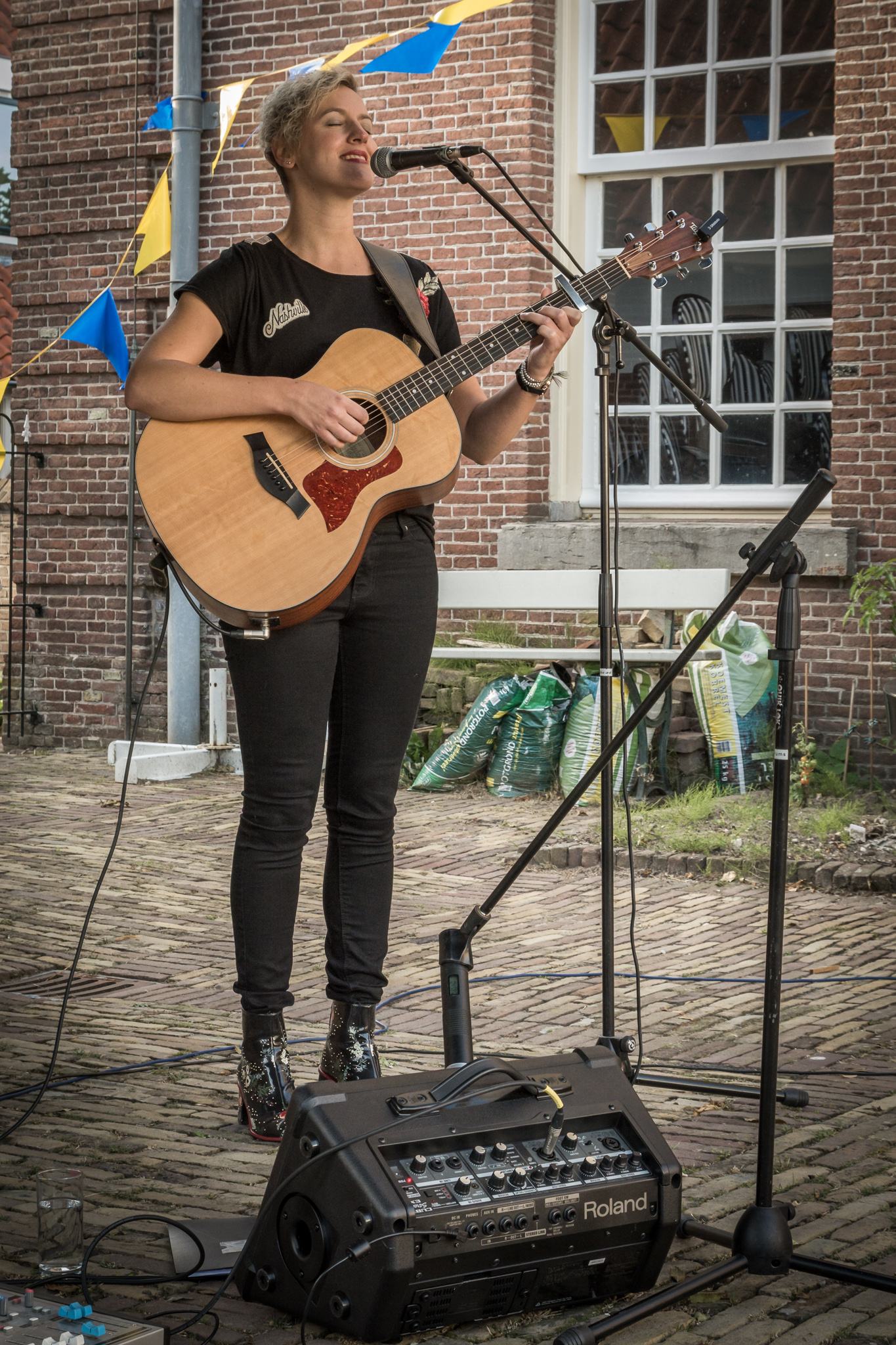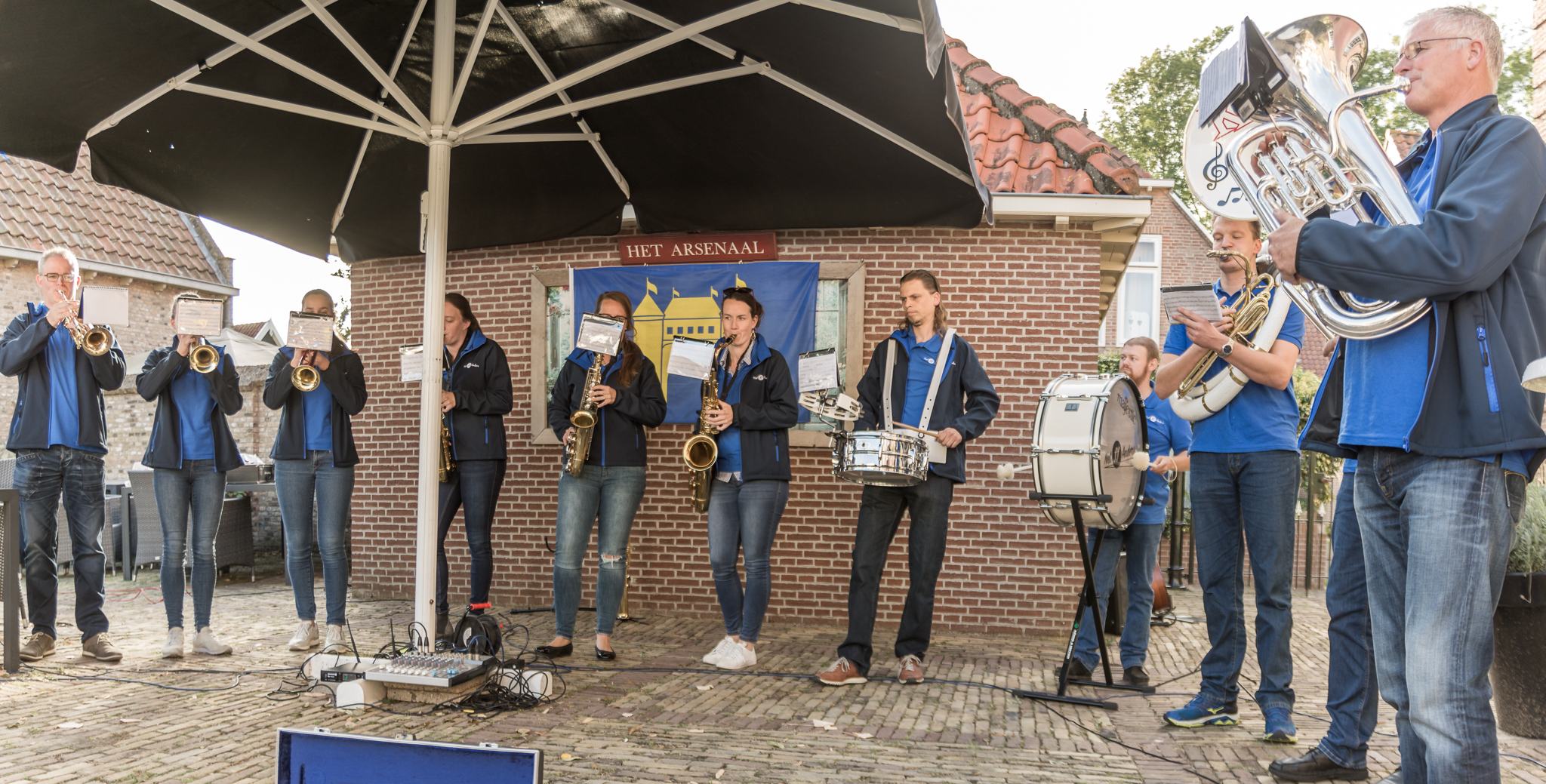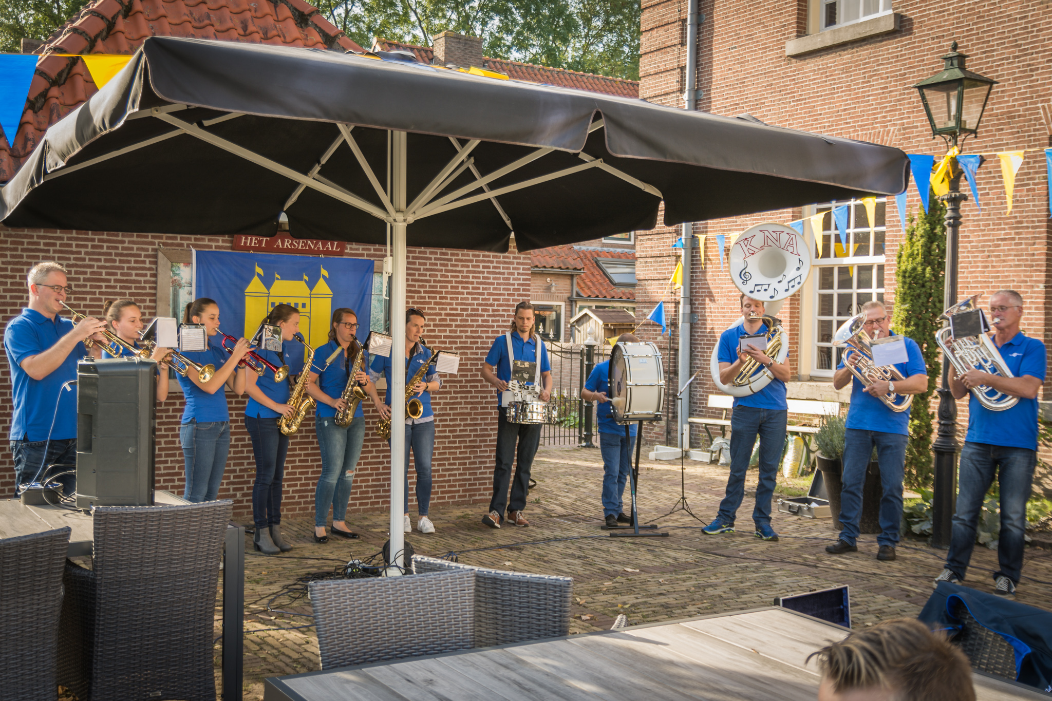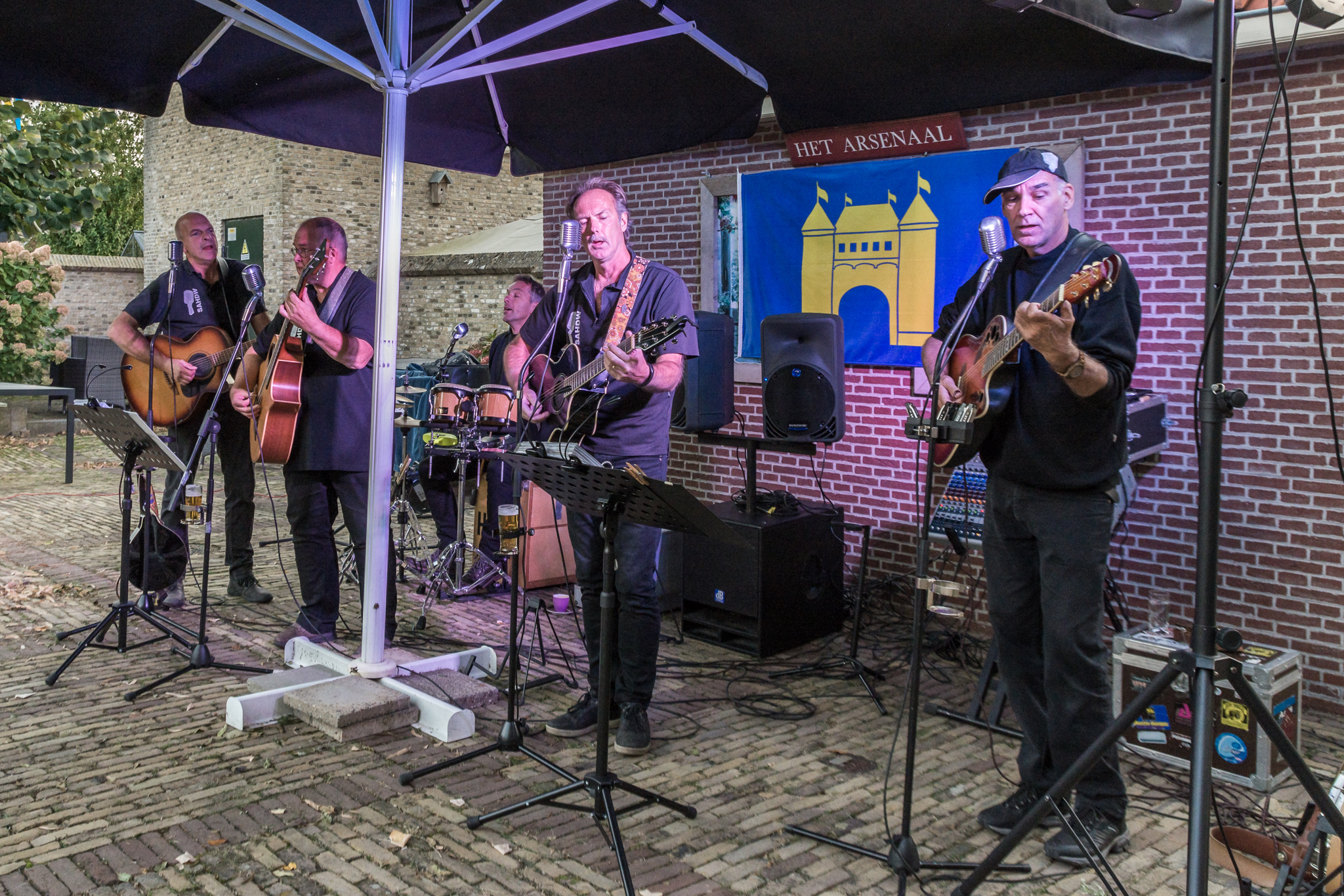 Eerst ’s middags in de binnentuin van Het Arsenaal met “Net ff Anders”, Marijke Verhoef en “Savonds Als Het Donker Wordt”.